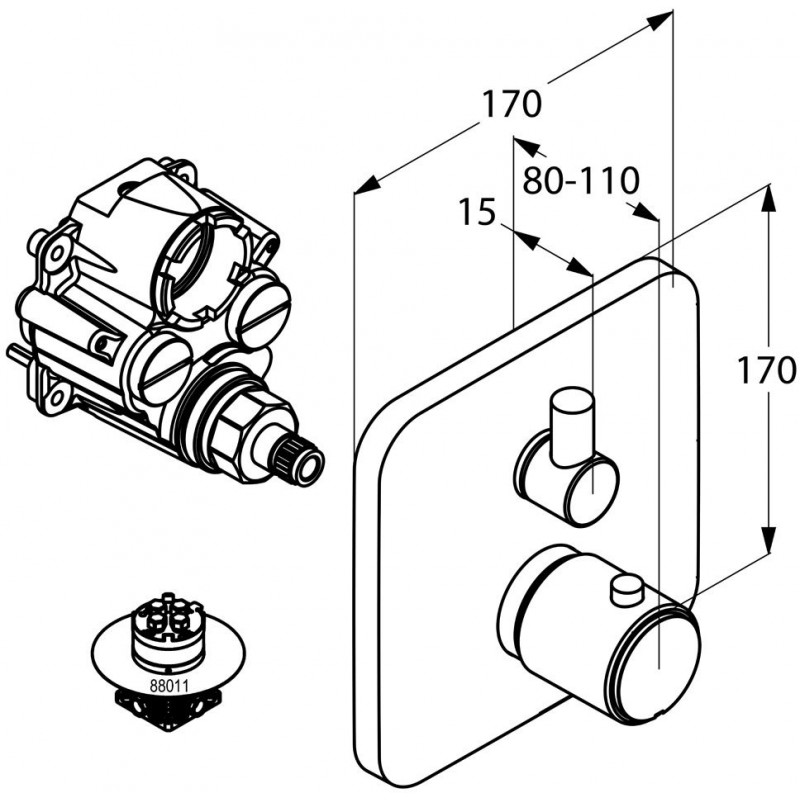 KLUDI E2 podomietková vaňová / sprchová termostatická batéria, chróm 498300575podomietková vaňová / sprchová termostatická batéria