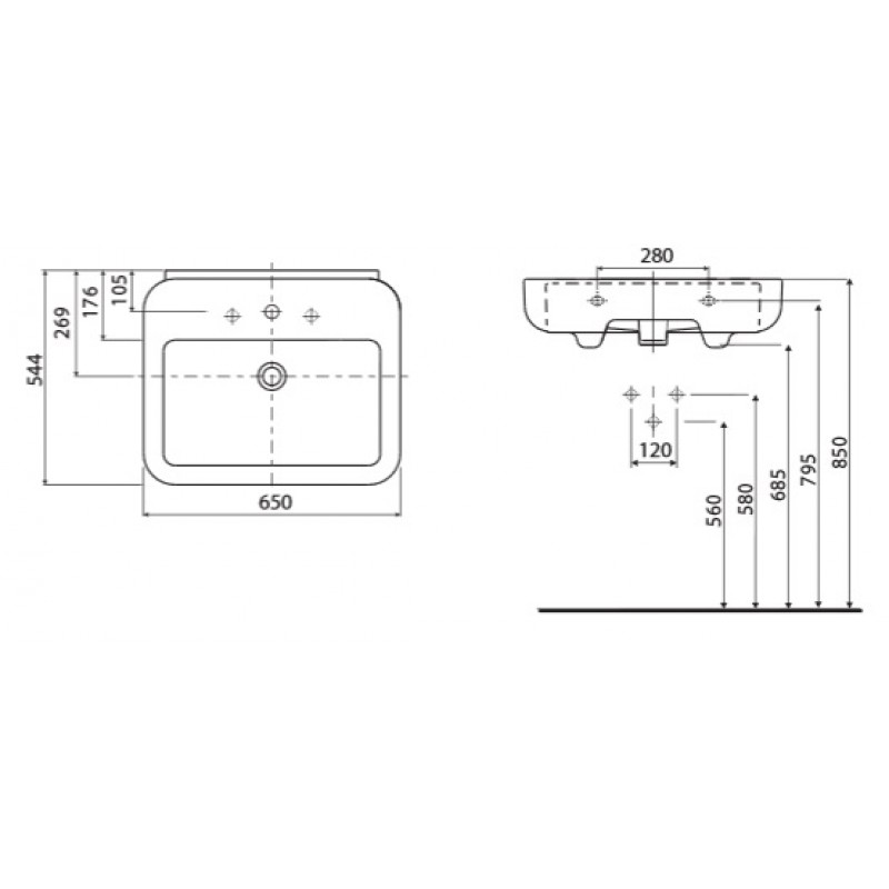KOLO Ego by Antonio Citterio umývadlo 65 x 54,4 cm, s otvorom pre batériu, s prepadom, Reflex K11165900- Farba: biela