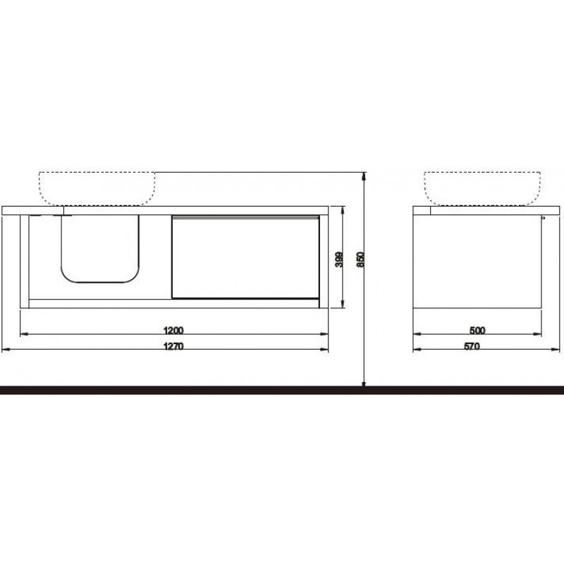 KOLO Ego / Ovum by Antonio Citterio skrinka pod umývadlo ľavá 127x39, 9x57cm teak 89226Skrinka pod umývadlo, závesná, pravá, s posuvnými dvierkami.