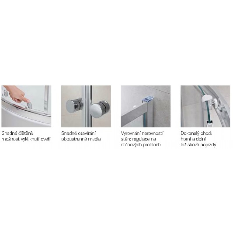 Rad taktiež ponúka posuvné dvere. Ponuka obsahuje sprchové vaničky s integrovaným čelným panelom, ktorý uľahčujú použitie aj v panelových domoch. Cenovo zvýhodnené sety kútov s vaničkami First sú prvou voľbou pre skvelú funkčnú kúpeľňu.