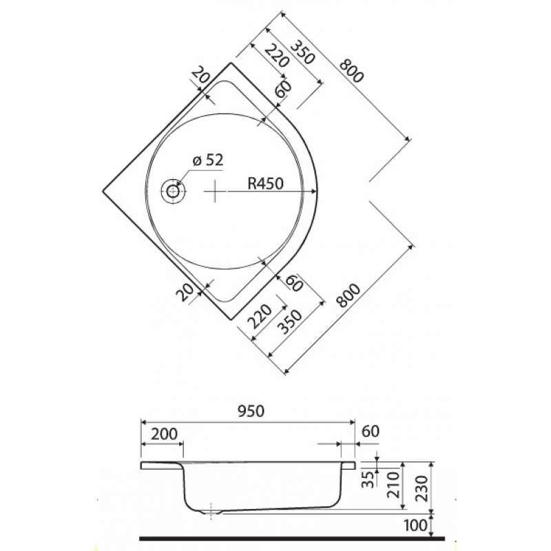 - odtok: O 52 mm
