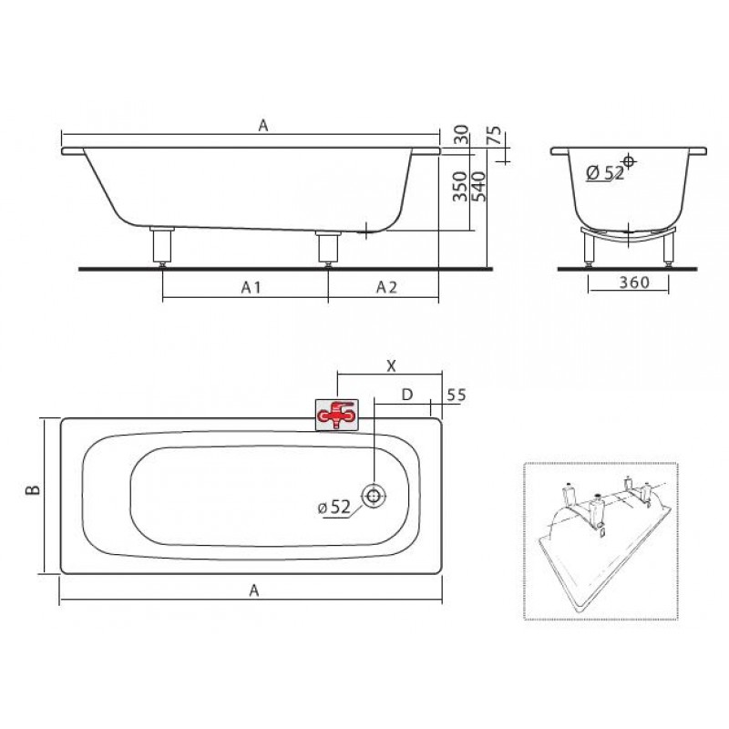 KOLO Lito pravouhlá vaňa 160 x 70 cm, bez madiel XWP1560Rozmer: 160 x 70 x 38 cm