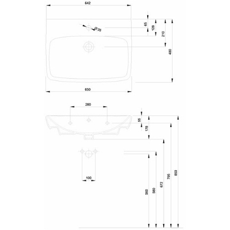 KOLO Nova Pre umývadlo pravouhlé, 65 cm, s otvorom pre batériu, s prepadom M31166000- hĺbka: 48 cm