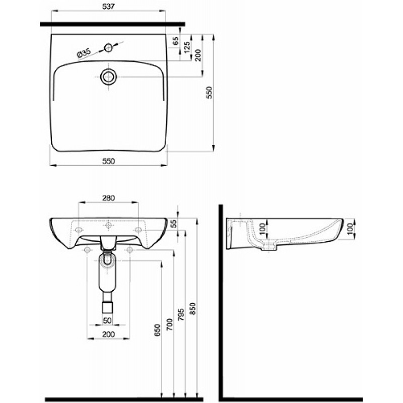 KOLO Nova Pro Bez Bariér umývadlo pre telesne postihnutých, 55 cm, s otvorom pre batériu, s prepadom M38155000- Umývadlo pre telesne postihnutých