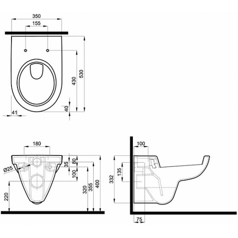 KOLO Nova Pro klozet závesný, oválny, s hlbokým splachovaním, 6 l M33100000- šírka: 35 cm