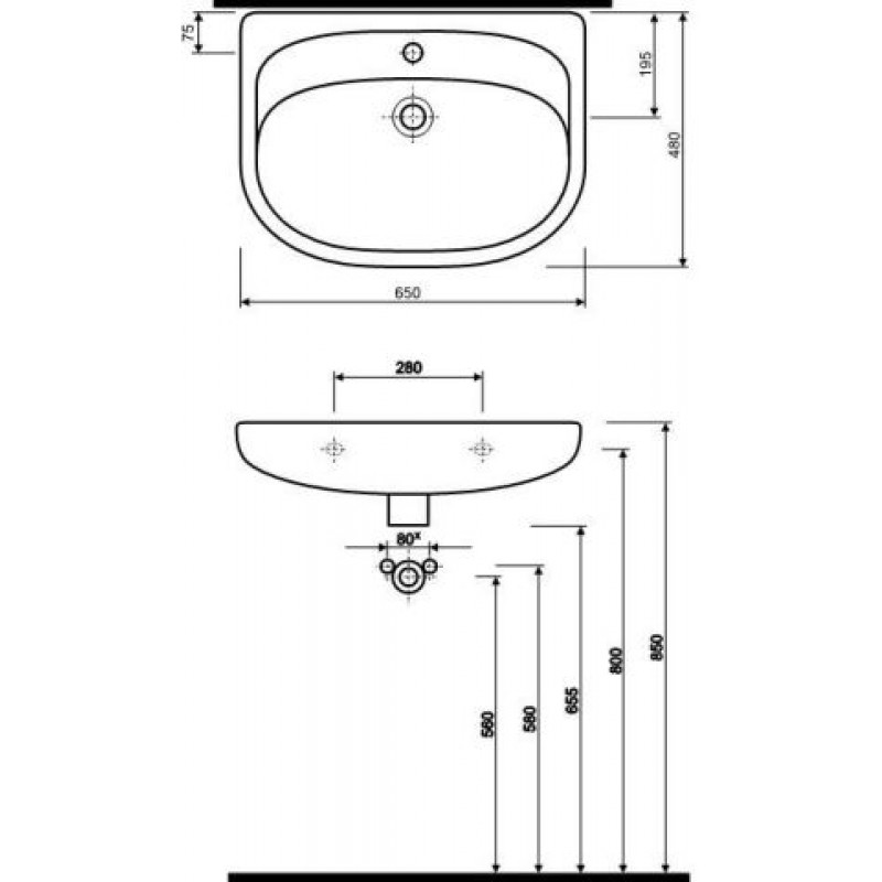 KOLO Nova umývadlo 65x48 cm s otvorom pre batériu 21165rozmery: 65 x 48 cm