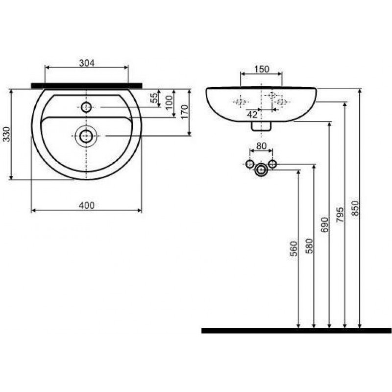 KOLO Rekord umývadielko 40 cm, s otvorom pre batériu, s prepadom K92140000- S prepadom