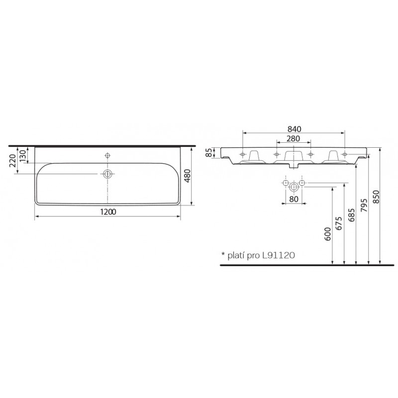 KOLO Traffic umývadlo 120 cm, pravouhlé, s otvorom pre batériu, s prepadom L91120000