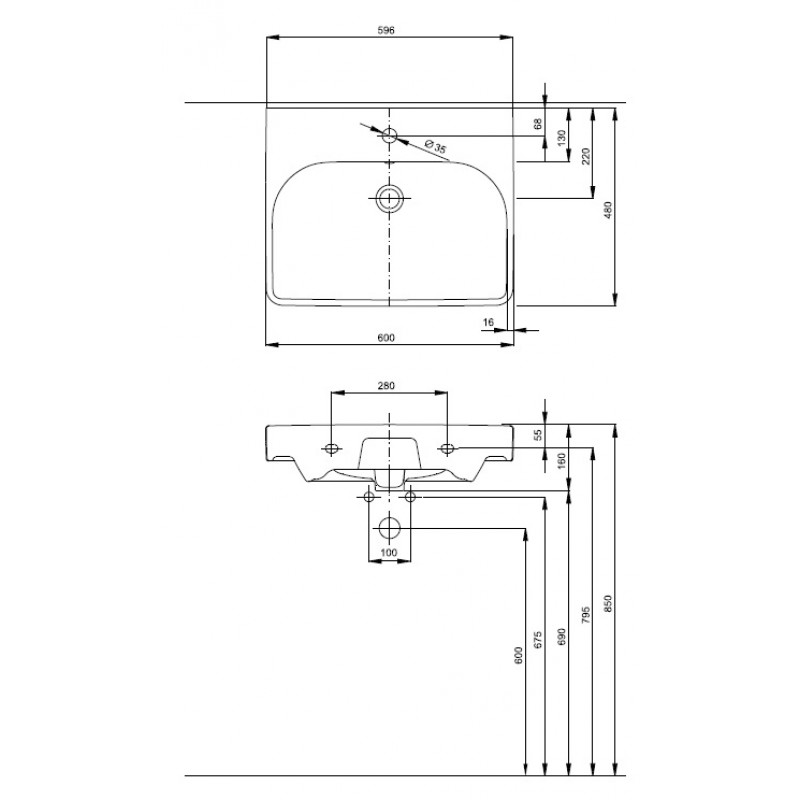 KOLO Traffic umývadlo 60cm, pravouhlé, s otvorom pre batériu, s prepadom, Reflex L91161900