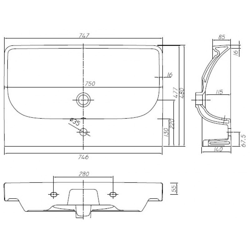 KOLO Traffic umývadlo 75 cm, pravouhlé, s otvorom pre batériu, s prepadom L91175000- Farba: biela