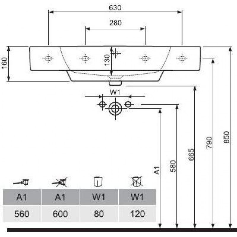 KOLO Varius Varius umývadlo nábytkové 80 cm, pravouhlé, s otvorom pre batériu, s prepadom, Reflex K31980900- S otvorom pre batériu