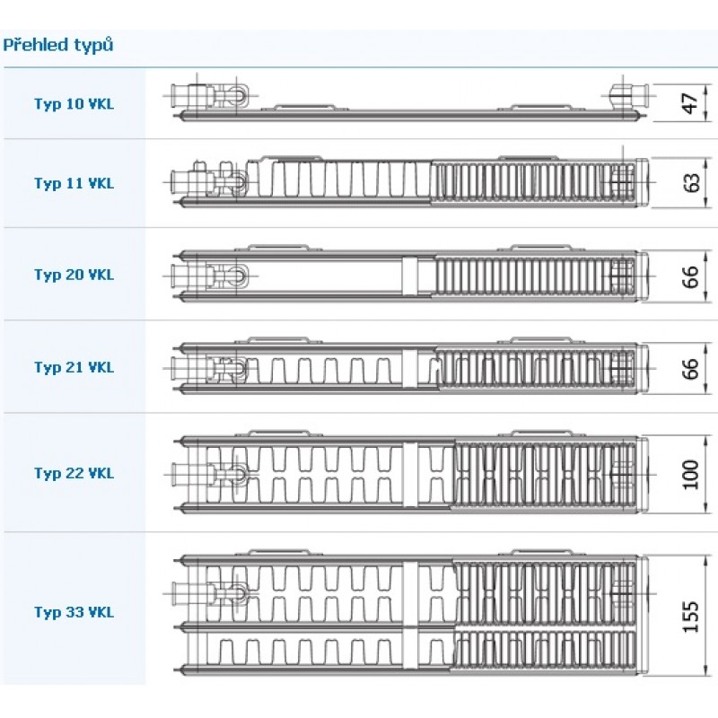 Korado doskový radiátor typ VKL 21 600/1000 21-060100-E0-10Model RADIK VKL je doskové vykurovacie teleso v prevedení VENTIL KOMPAKT, ktoré umožňuje ľavé spodné pripojenie na vykurovaciu sústavu s núteným obehom. Zo zadnej strany sú privarené dve horné a dolné príchytky, radiátory o dĺžke 1800 mm a dlhšie majú navarené šesť príchytiek.