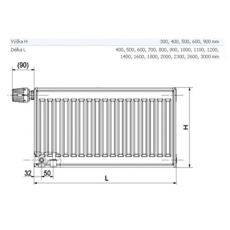 KORADO doskový radiátor typ VKL 11 900 / 800 11-090080-E0-10Model RADIK VKL je doskové vykurovacie teleso v prevedení VENTIL KOMPAKT, ktoré umožňuje ľavé spodné pripojenie na vykurovaciu sústavu s núteným obehom. Zo zadnej strany sú privarené dve horné a dolné príchytky, radiátory o dĺžke 1800 mm a dlhšie majú navarené šesť príchytiek.