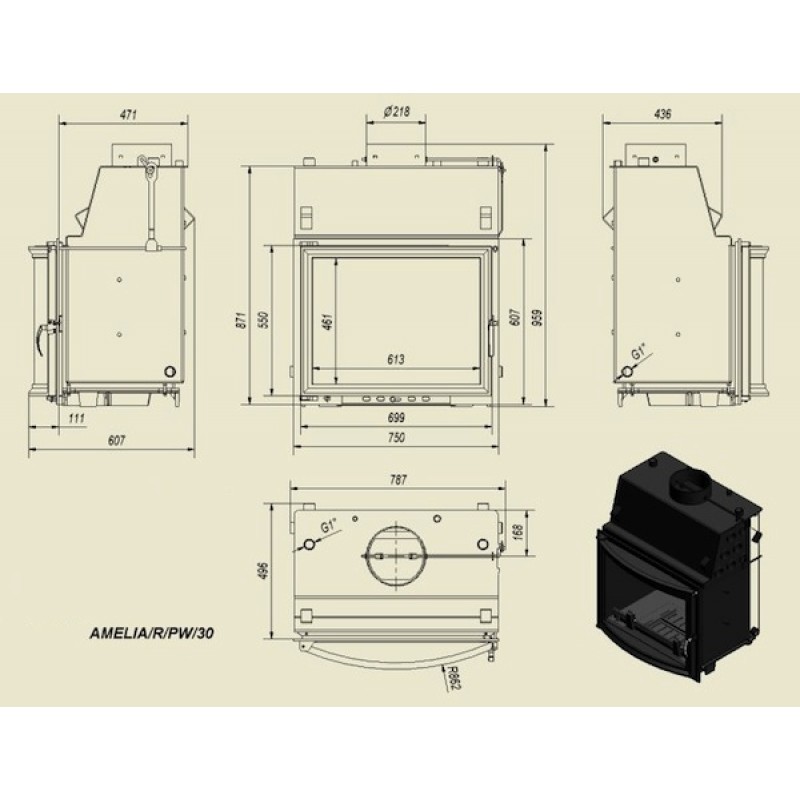 KRATKI AMELIA/R/PW/30 kW krbová vložka teplovodné, oblúkové sklo, bez chladiacej slučkyVýkon nominálny: 30 kw