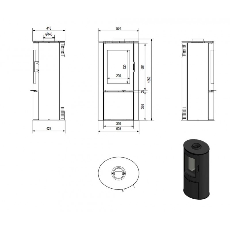 KRATKI KOZA/AB/S/DR/KAFEL/CZARNY 8kW krbové kachle teplovzdušná, čierna