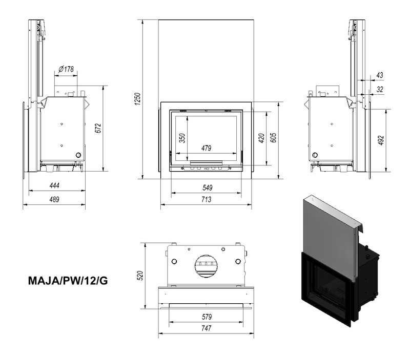 KRATKI MAJA/PW/12/G krbová vložka teplovodné, výsuvné sklo, bez chladiacej slučkyZáruka 5 rokov