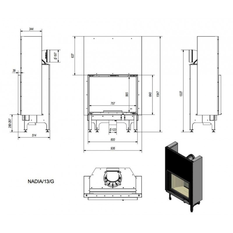 KRATKI NADIA/13/G krbová vložka teplovzdušná, rovné sklo s výsuvomS externým prívodom vzduchu