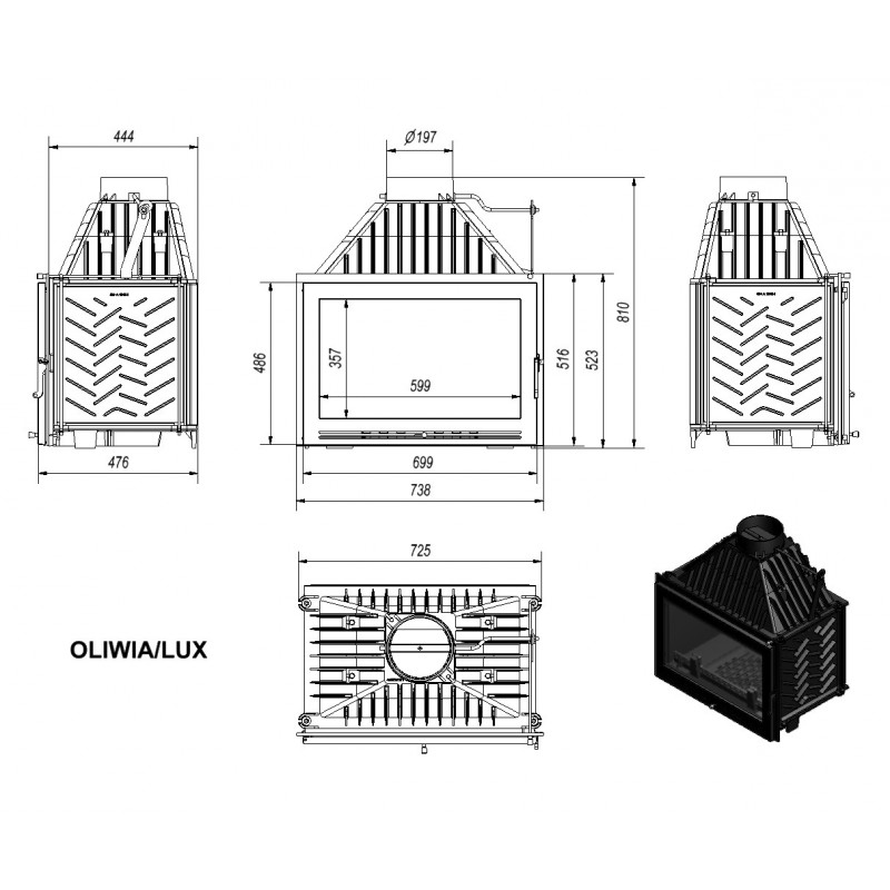 KRATKI OLIWIA/LUX 18 kW krbová vložka teplovzdušná, luxusné skloVýkon: 18 kW
