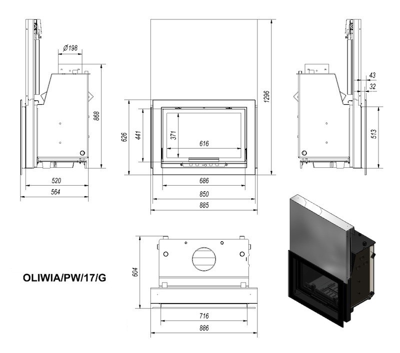 KRATKI OLIWIA/PW/17/G/W krbová vložka teplovodné, výsuvné sklo, s chladiacou slučkouVýkon nominálny: 17 kw
