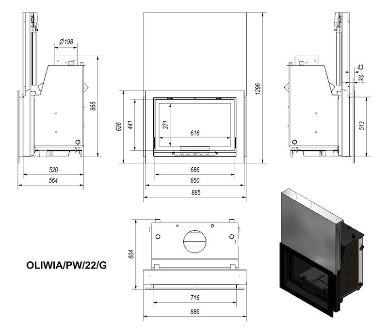 KRATKI OLIWIA/PW/22/G/W krbová vložka teplovodné, výsuvné sklo, s chladiacou slučkouVýkon nominálny: 22 kw