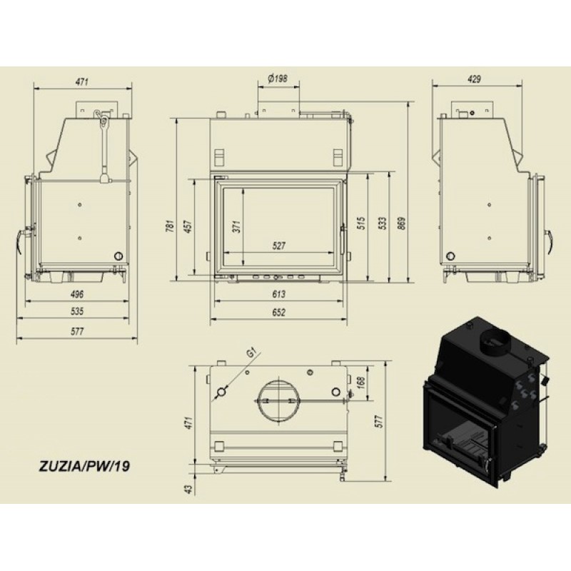 KRATKI ZUZIA/PW/19/W krbová vložka teplovodné, rovné sklo, s chladiacou slučkouVýkon nominálny: 19 kw