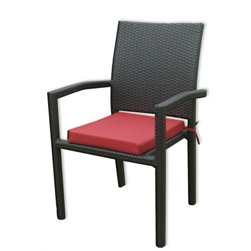 Záhradné kreslo s hliníkovou konštrukciou opletenie plochým umelým ratanom čiernej farby a vínovú poduškou pre príjemné posedenie. výborne sa kombinuje so všetkými typmi záhradného nábytku z umelého ratanu vhodné do altánku, na terasy, ale aj do kaviarní či reštaurácií ľahko udržiavateľné a umývateľné.hliníková kostra, čierny ratan