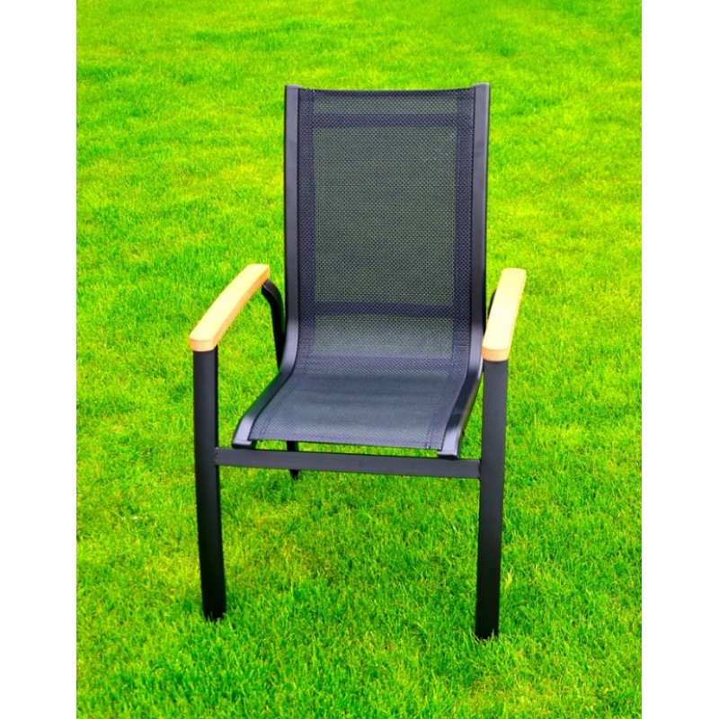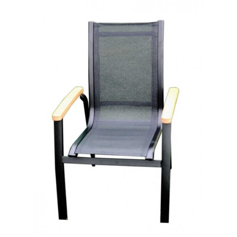Stohovateľné záhradné kreslo ANGELA s hliníkovou kostrou. Sedák a operadlo je z kvalitnej textílie (4x4 mm) a podrúčky POLYWOOD v teakové farbe.Možno kombinovať so stolom a ležadlom rovnakej rady.