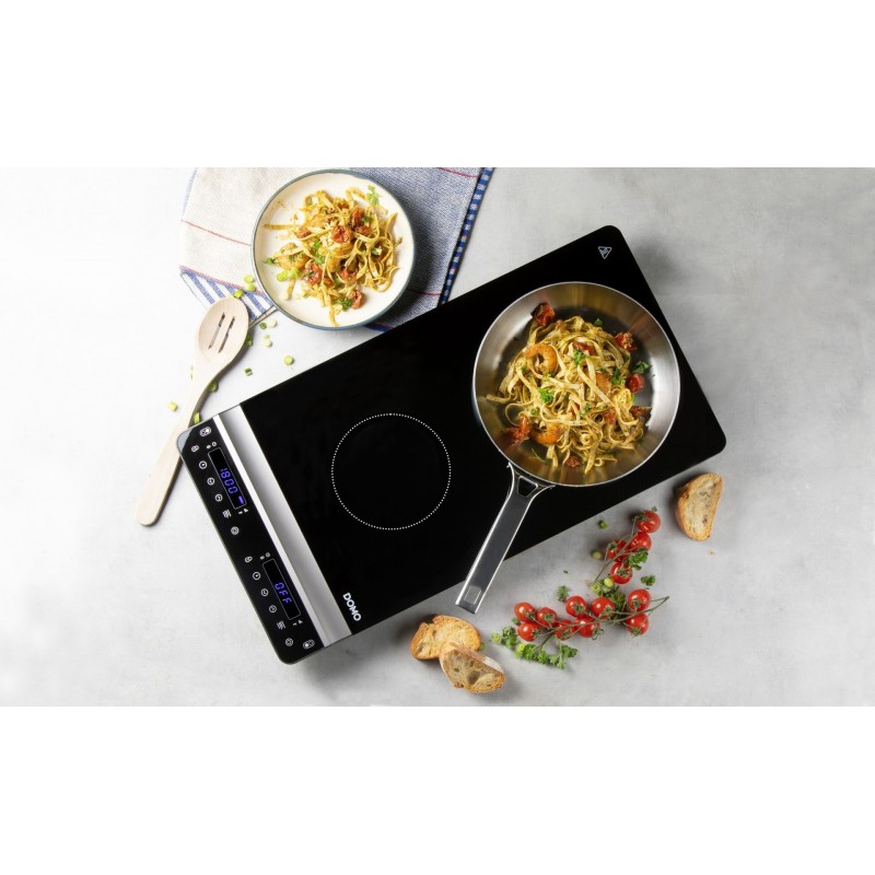 Varič je vybavený dotykovým ovládaním s LED displejom, ktoré umožňuje presne nastaviť teplotu, výkon aj čas. Vďaka širokému rozsahu nastavení je ideálny na smaženie, varenie, dusenie aj ohrievanie. Moderná sklokeramická doska zabezpečuje jednoduchú údržbu a elegantný vzhľad.