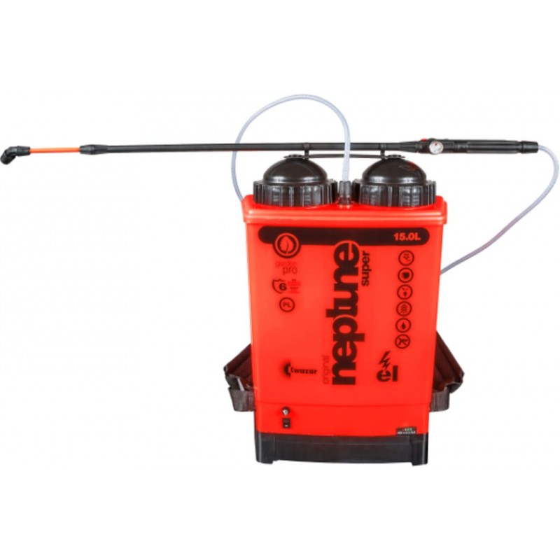 KWAZAR Neptún Super EL chrbtový tlakový postrekovač 15 l, akumulátorovýChrbtový tlakový postrekovač na dobíjaciu batériu určený pre aplikáciu chemických prípravkov, postrekov