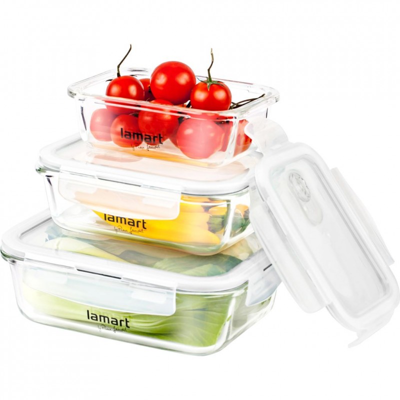 Praktická a spoľahlivá sada dóz pre skladovanie a prenášanie potravínVyrobená z odolného skla a plastu s kvalitným silikónovým tesnením viečka - vzduchotesné a vodotesné