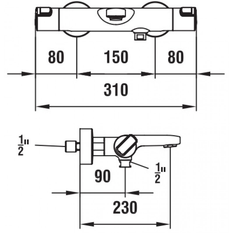 Vaňová termostatická nástenná batéria- Bez sprchového príslušenstva