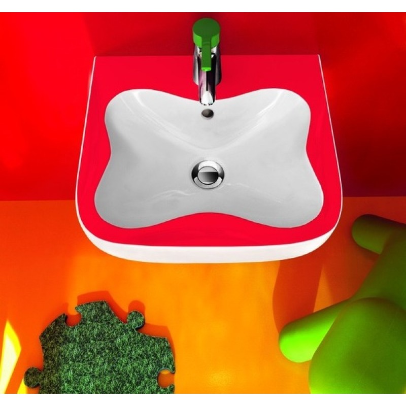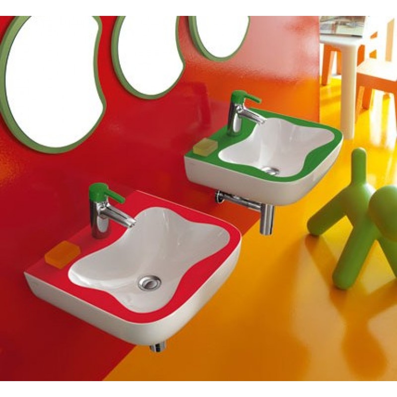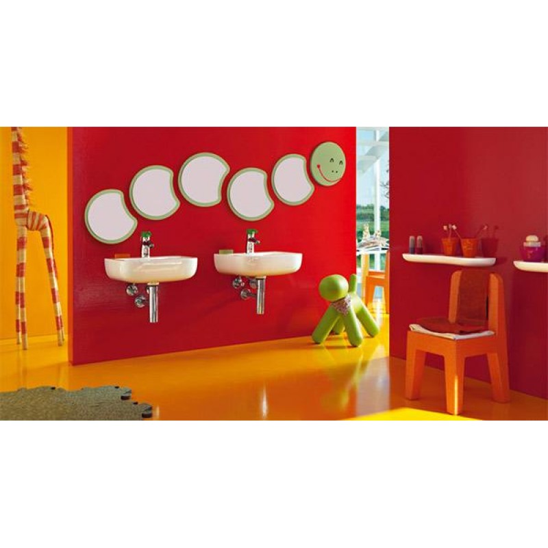 Najdôležitejším prvkom tejto rady je umývadlo pre deti v tvare veľkého kvetu v bielom, červenom a zelenom prevedení. Napríklad pre škôlky je vhodné nielen dizajnom, ale aj praktickým prevedením - pri umiestnení niekoľkých umývadiel vedľa seba vytvoríte dostatočne veľký odkladací priestor.