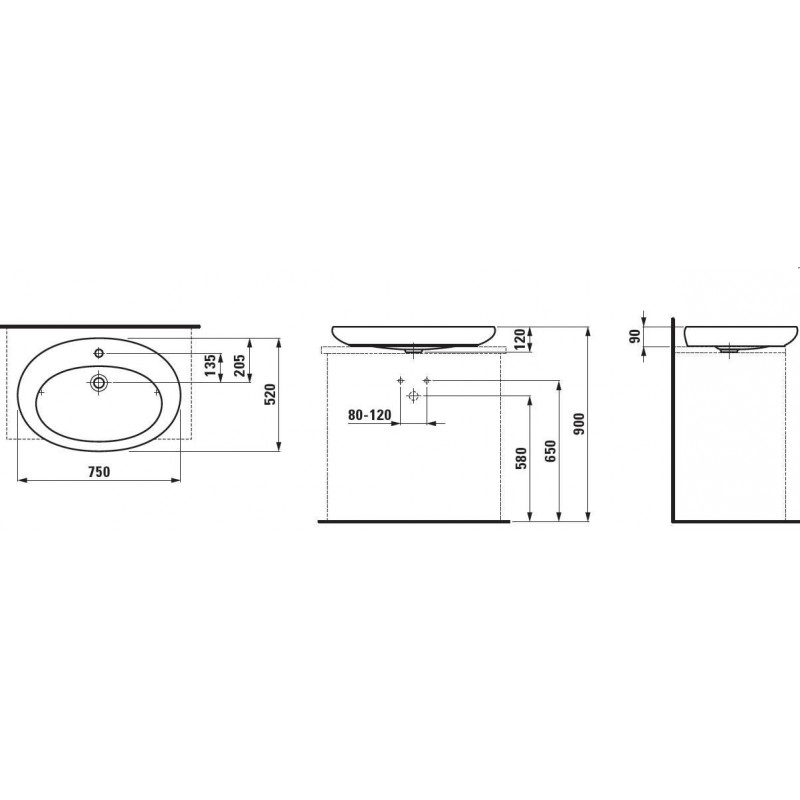 LAUFEN IL BAGNO ALESSI ONE Umývadlová misa 75x52 s otvorom, LCC 8.1897.2.400.104.1