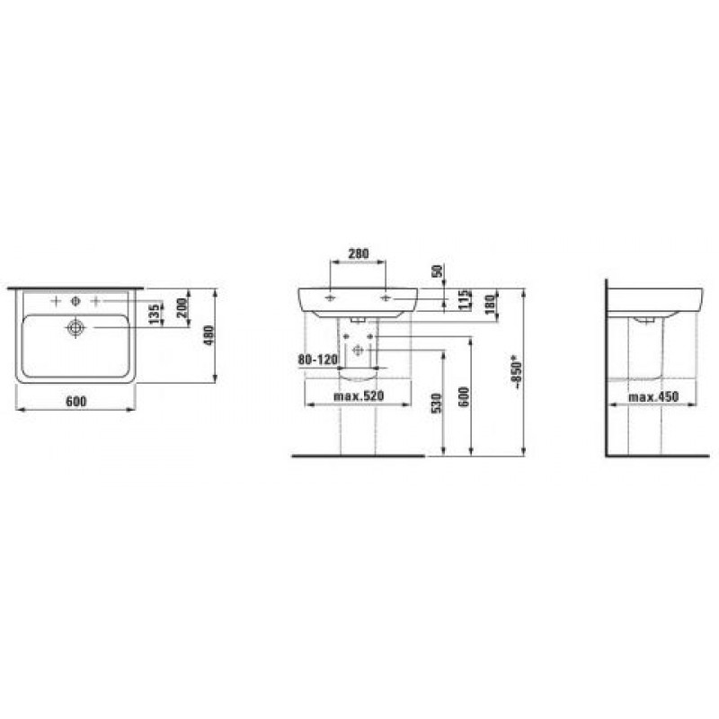LAUFEN PALACE Umývadlo do nábytku 60x48cm 3 otvory, biele 8.1070.2.000.108.1