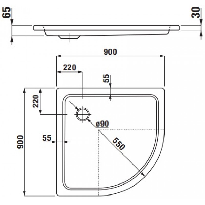 LAUFEN PLATINA Oceľová vanička štvrťkruh, pol.550mm, 90x90cm, AntiSlip, 2.1501.8.600.040.1