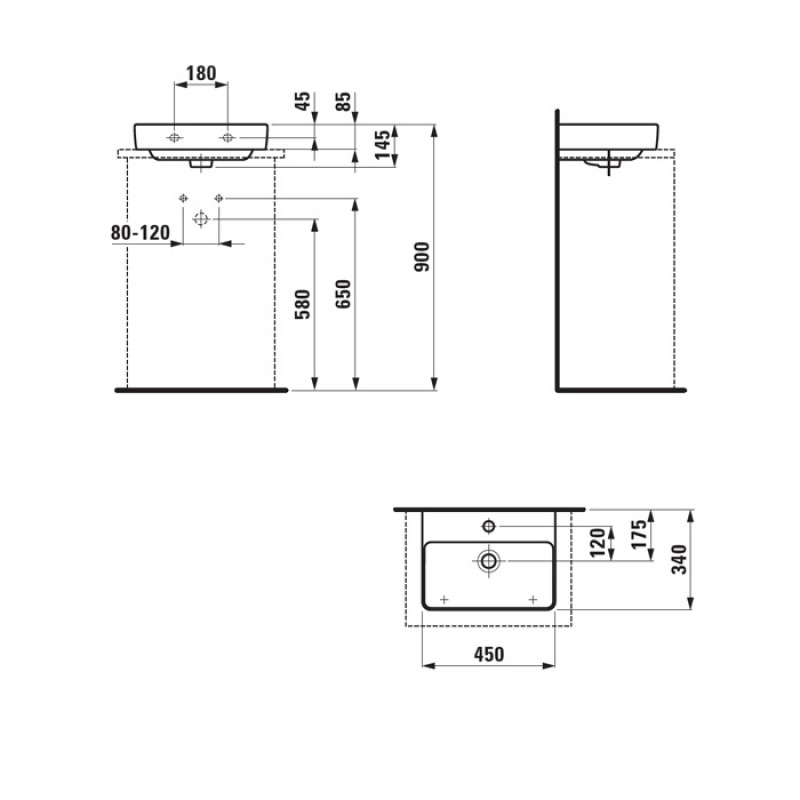 LAUFEN PRO S Umývadielko 45x34 cm, brúsené, s otvorom, bez prepadu, biela 8.1696.1.000.142.1Umývadlo