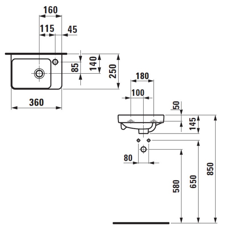 LAUFEN PRO S Umývadielko asymetrické 36x25 cm, s 1 otvorom, bielaUmývadlo