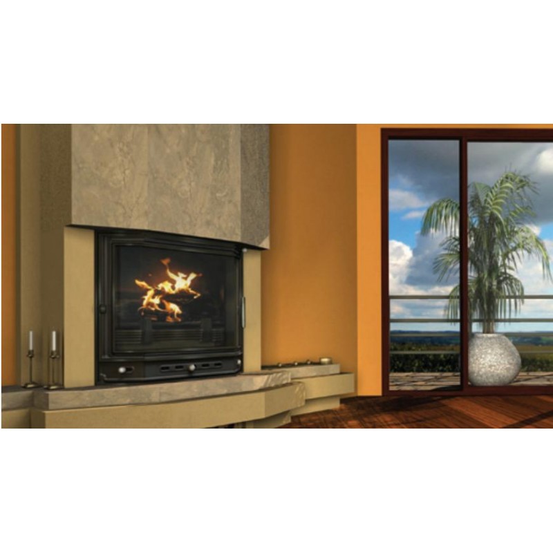 - Vzduch pre horenie môže byť z väčšej časti privedený z exteriéru pod krbovú vložku, kde sa nasadí na prírubu. Tá je štandardne súčasťou ponuky