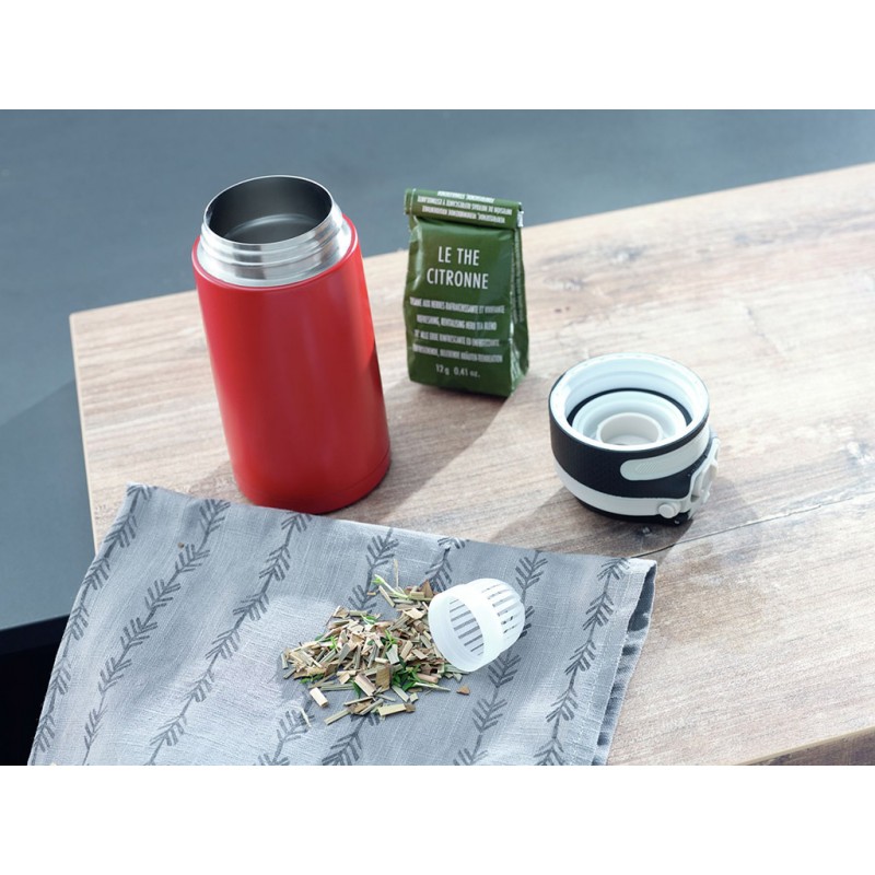 - Uzáver je 100% nepriepustný, dá sa otvoriť jednou rukou, s odnímateľným sitkom, šikovnou rukoväťou a mäkkou zónou pre uchopenie.