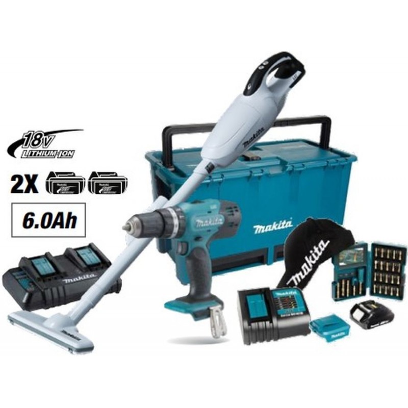 Makita HF2108-3 Aku skrutkovač DHP453ZX11 + vysávač DCL181FZWX + 2x Aku 18V/6Ah + DC18SH