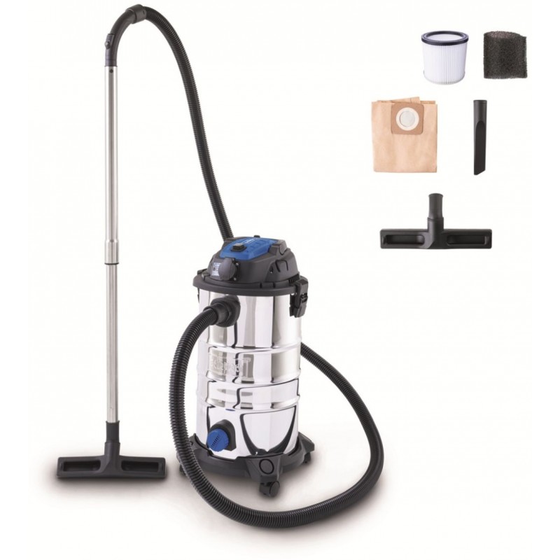 Scheppach VC 30P-GL je vysoko výkonný priemyselný vysávač určený pre mokré i suché vysávanie s kapacitou zásobníka 30 litrov. Vďaka funkcii podtlakového čistenia filtra sa jedná o jeden z mála vysávačov vo svojej triede, ktorý umožňuje jednoduché odstránenie zachytených častíc stlačením tlačidla, bez nutnosti rozoberania stroja a ručného čistenia filtra.