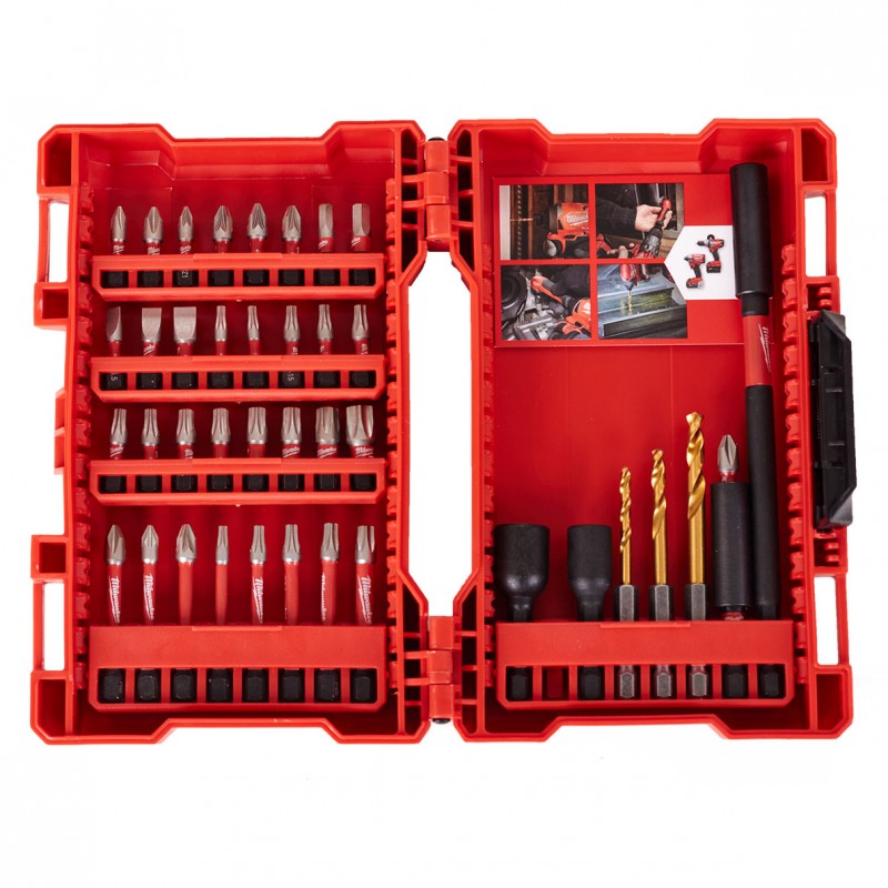 Milwaukee Shockwave Sada bitů a vrtáků 40ks + pravoúhlý rázový nástavec 4932478906