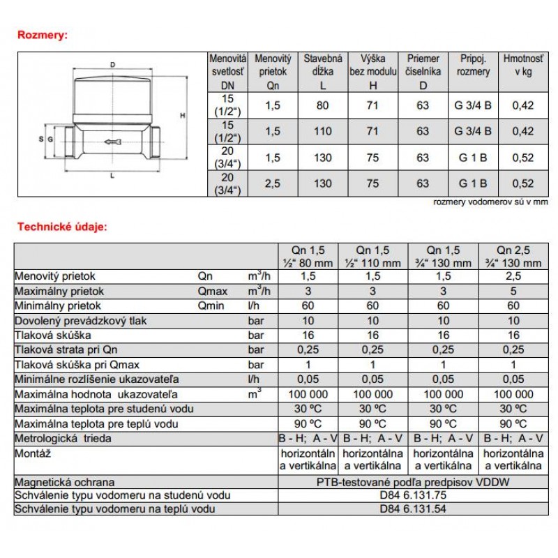 - DN15, závit 3/4 ", 110mm (80mm), PN 10