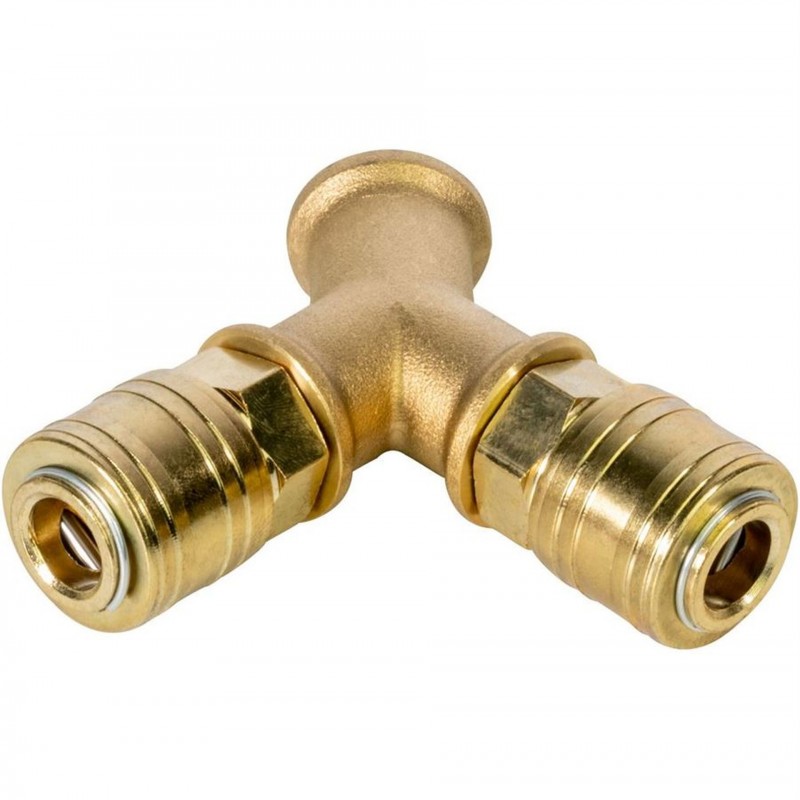 Kvalitný rozdeľovač tlakového vzduchu určený na bezpečné a spoľahlivé rozdelenie vzduchu do dvoch samostatných vetiev. Vďaka masívnemu mosadznému korpusu (MS58) a integrovaným rýchlospojkám ponúka vysokú odolnosť proti korózii, dlhú životnosť a presné tesnenie.