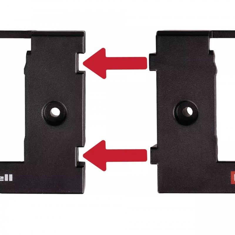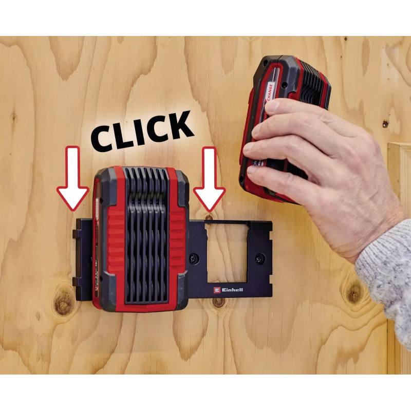 Žiadna dielňa by nemala byť bez originálneho nástenného držiaka Einhell Power X-Change. Umožňuje odkladať batérie úsporne a je vhodný na montáž hore nohami, napríklad pod pracovný stôl. Batérie budete mať vždy po ruke. Nástenné držiaky sú užitočné aj na cestách, pretože ich možno montovať do karavanov alebo dodávok. Systém zacvaknutia zabezpečuje, že batérie počas jazdy nevypadnú z držiakov.