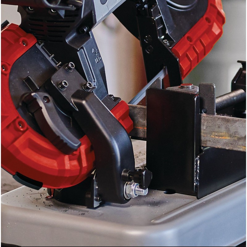 Aku pásová píla TE-MB 18/127 U Li-Solo od Einhellu je vysoko výkonným členom rodiny Power X-Change, v ktorej je možné flexibilne kombinovať všetky batérie, systémové zariadenia a nabíjačky. Vďaka odnímateľnému stolu ponúka táto akumulátorová pásová píla plnú flexibilitu použitia aj v stiesnených priestoroch – a to so základným rámom alebo bez neho. Rezanie kovu bez iskier zaručuje maximálnu bezpečnosť pri práci. Uhol pre pokosové rezy je možné nastaviť v rozsahu od 0° do 47°, pričom výška/šírka rezu dosahuje 115 × 127 mm. Rýchloupínacia páka umožňuje výmenu pílového pásu bez použitia náradia, ktoré nie je potrebné ani na nastavenie rukoväti. Jednoduchá regulácia otáčok zaisťuje maximálny komfort pri práci a integrované LED svetlo poskytuje ideálne osvetlenie pracovnej plochy. Súčasťou dodávky je náhradný pílový pás a základný rám. Batéria a nabíjačka nie sú súčasťou dodávky – sú však k dispozícii samostatne, napríklad ako praktická štartovacia sada.