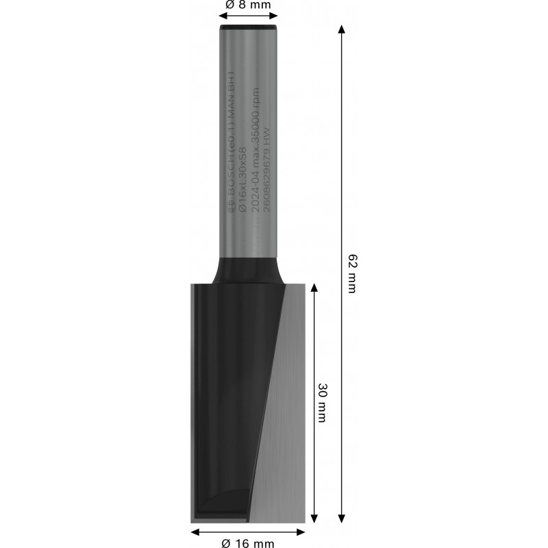 BOSCH Fréza s jedným ostrím PRO, s dvoma britmi, ø 16 x D 30, stopka 8mm 2608629679