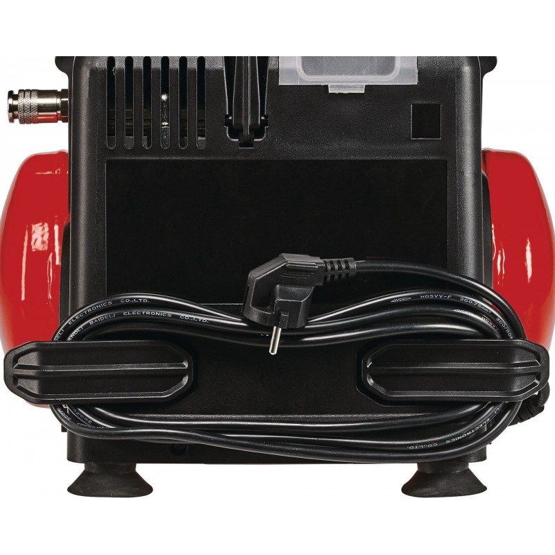 Kompresor Einhell TC-AC 190/6/8 OF Set je skutečně všestranným pomocníkem pro širokou škálu úkolů v domácnosti, dílně i garáži. Se správným nářadím lze kompresor použít k mnoha účelům: od lakování a mazání až po vyfukování a čištění. Pneumatiky, míče a matrace se během okamžiku naplní vzduchem. Bezolejový a bezúdržbový motor nevyžaduje velkou údržbu. Mobilní kompresor je vybaven šestilitrovou nádrží na stlačený vzduch, která umožňuje dlouhodobou práci. Praktické je navíjení kabelu na zadní straně krytu. V krytu je integrován háček a úložný prostor pro příslušenství. Díky redukčnímu ventilu, který lze nastavit až na 8 barů, zvládne kompresor širokou škálu aplikací. K dispozici je manometr a rychlospojka pro regulovaný pracovní tlak. Nožičky zajišťují bezpečný stoj během provozu. Bezpečnost uživatele zajišťuje bezpečnostní ventil. Vypouštěcí šroub umožňuje pohodlnou údržbu. Součástí vybavení je adaptér pro použití jako foukací pistole, nafukovačka pneumatik, pětimetrová spirálová hadice a osm různých adaptérů (např. pro míče, pneumatiky a vzduchové matrace). Společnost Einhell poskytuje desetiletou záruku na prorezavění kotle.
