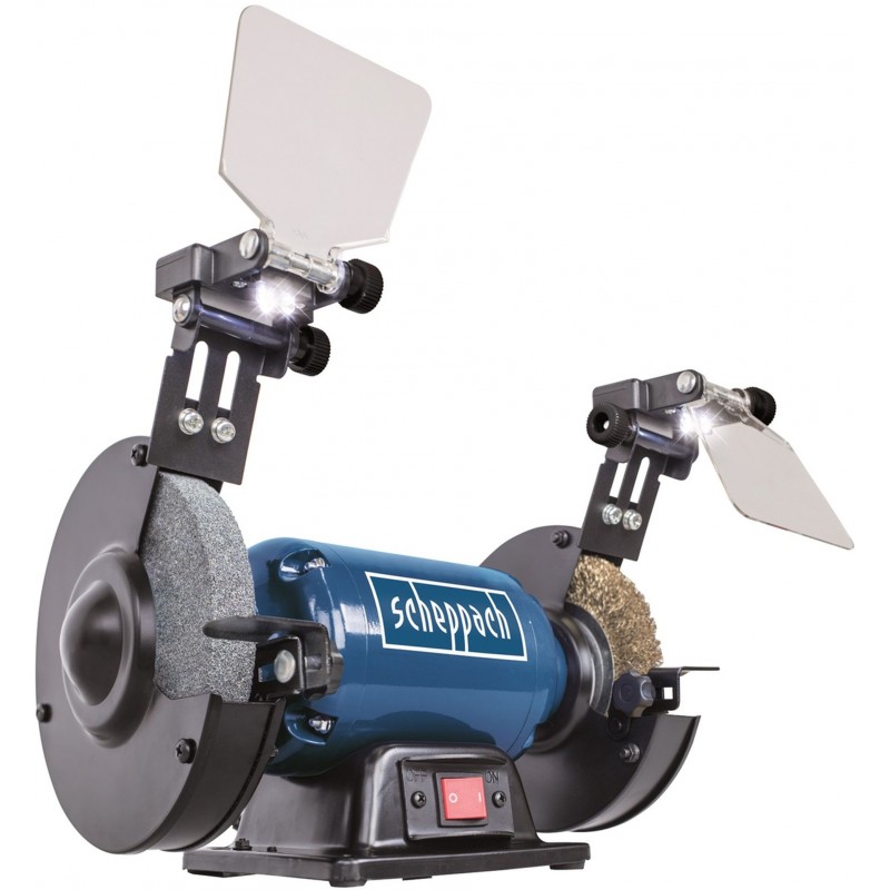 Kombinovaný model brúsky Scheppach SM 150 LB svojím prevedením a schopnosťami rozhodne nesklame ani náročnejších hobby užívateľa. Má pevnú konštrukciu, presné vedenie oboch kotúčov a tichý, výkonný a bezúdržbový indukčný motor. Jeden brúsny kotúč s priemerom 150 mm je ideálna na bežné brúsenie a hrubšie leštenie a druhý oceľová kefa s priemerom 150 mm sa skvele hodí na odstraňovanie hrdze, čistenie železných i neželezných materiálov alebo na prípravu povrchu na spájkovanie či zváranie. Brúska má stabilný podstavec z liatiny s možnosťou ukotvenia na pracovnú dosku, gumové nožičky pre lepšiu stabilitu, ochranné štíty kotúčov proti odlietavajúcim častiam obrobku, nastaviteľné opierky na obrobok zvyšujúce životnosť kotúčov a moderné integrované LED osvetlenie nad každým kotúčom pre dobrú viditeľnosť pri práci.technické parametre