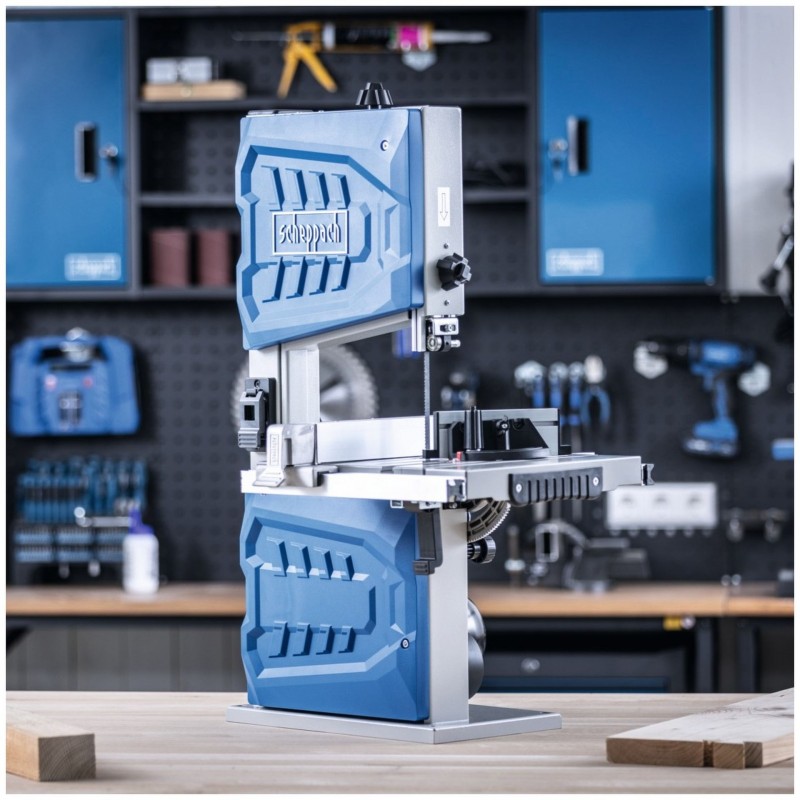 Vďaka dvom rezným rýchlostiam je pásová píla schopná vykonávať čisté a presné rezy v rôznych materiáloch aj v dreve rôznej tvrdosti. Základom stroja je silný a tichý indukčný motor s bezuhlíkovou technológiou, ktorý zaručuje spoľahlivý chod a dlhú životnosť. Pracovný stôl je naklápací v rozsahu 0° až 45°, má možnosť predĺženia a je vyrobený z odolnej hliníkovej zliatiny. Vo výbave nechýba pevné posuvné pravítko s rýchloupínaním ani presné uhlové pravítko. Zvyšok konštrukcie pásovej píly je celokovový.